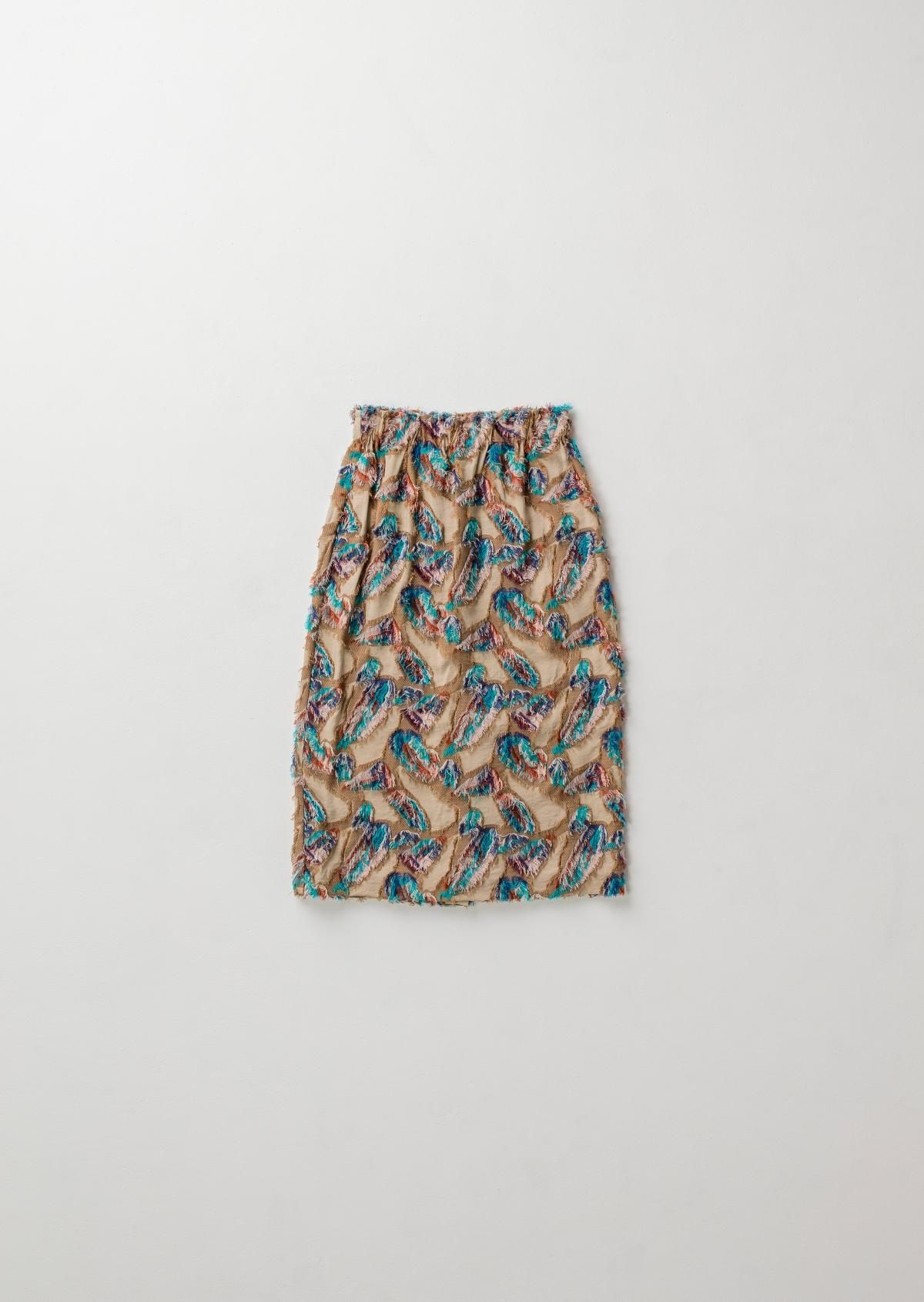 カットジャガード生地の華やかさと、リラックス感をあわせ持つ、ゆったりとしたストレートシルエットのスカート。