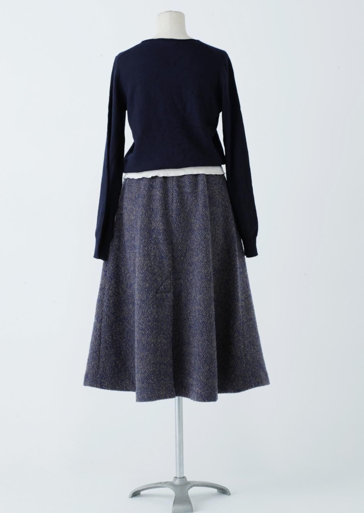 後ろの裾に、生成りの異素材ニットを編み続けたセーター。