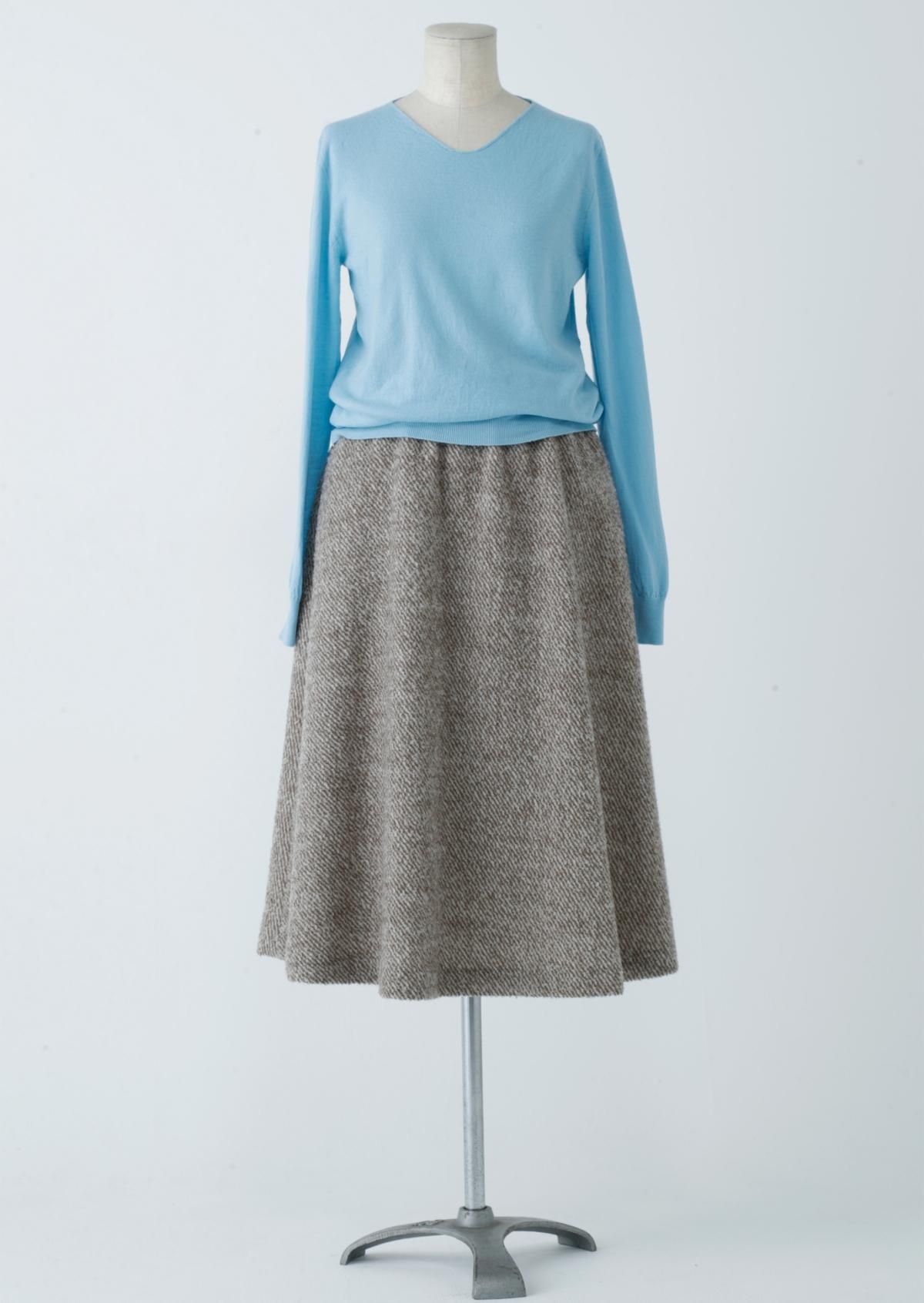 切りっぱなしのように編み上げたネックラインがごろつかずすっきりとした印象に。