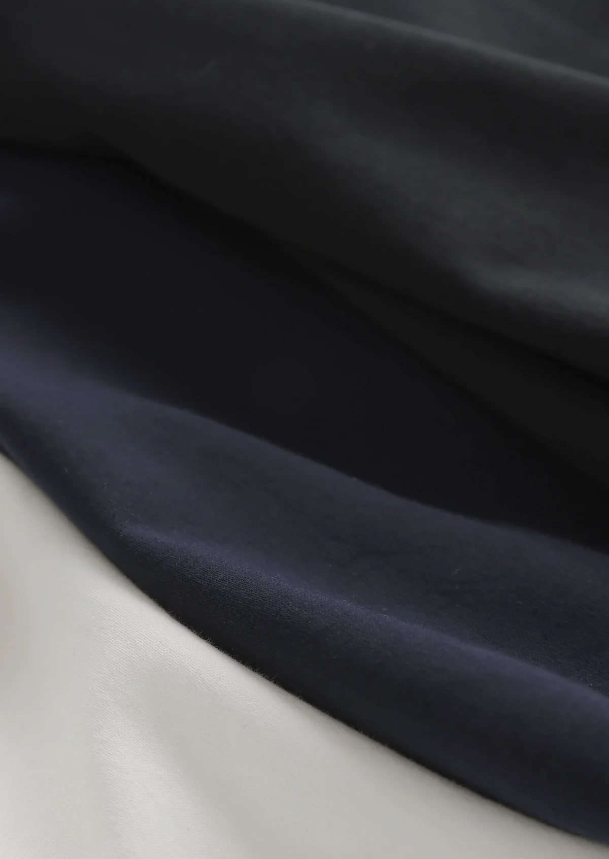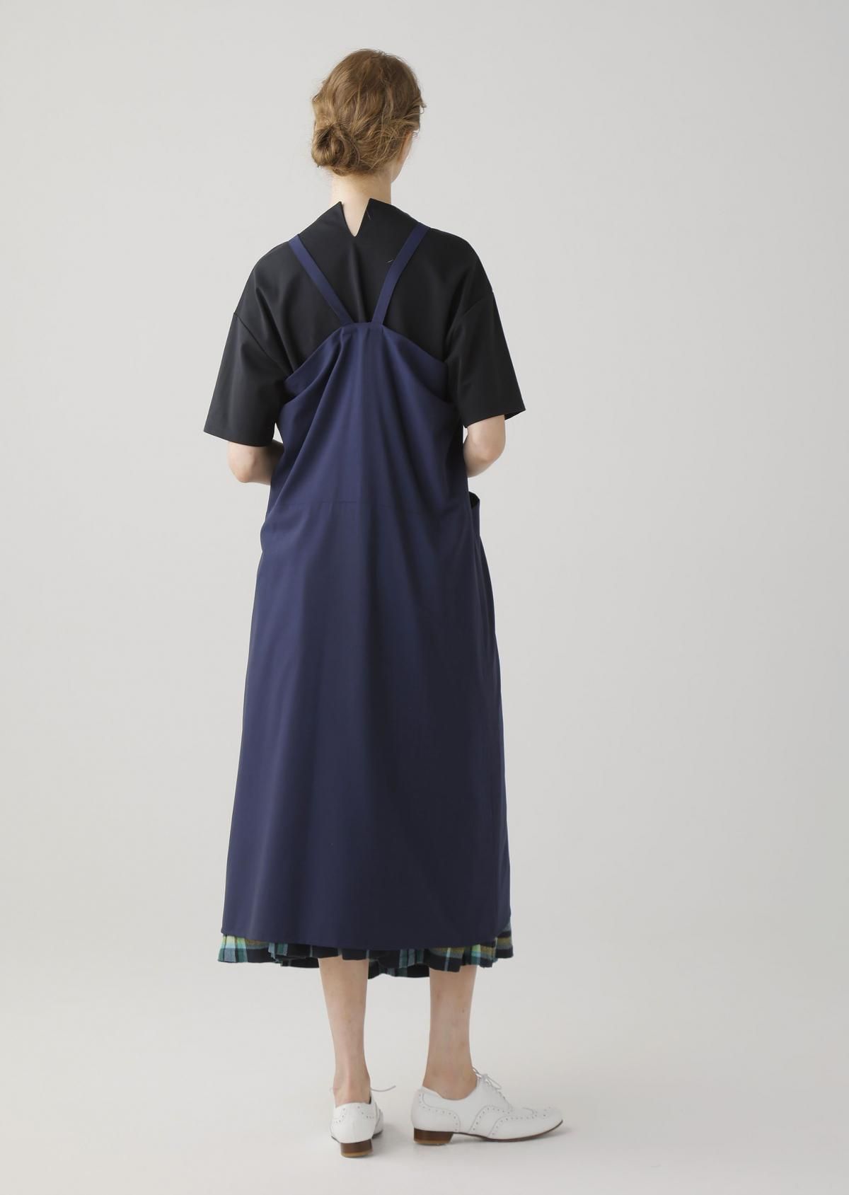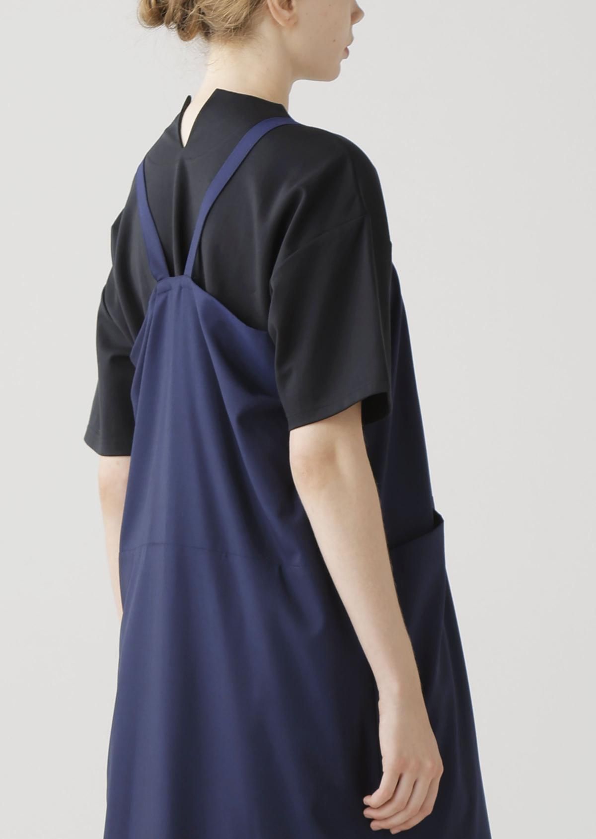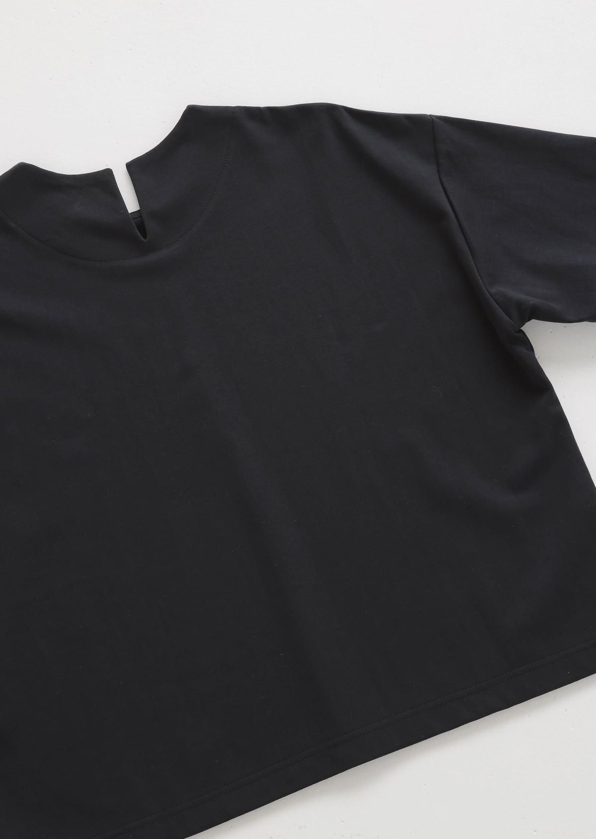フロントはクリーンなクルーネック、スリット開きの後ろ姿がワンポイントに。