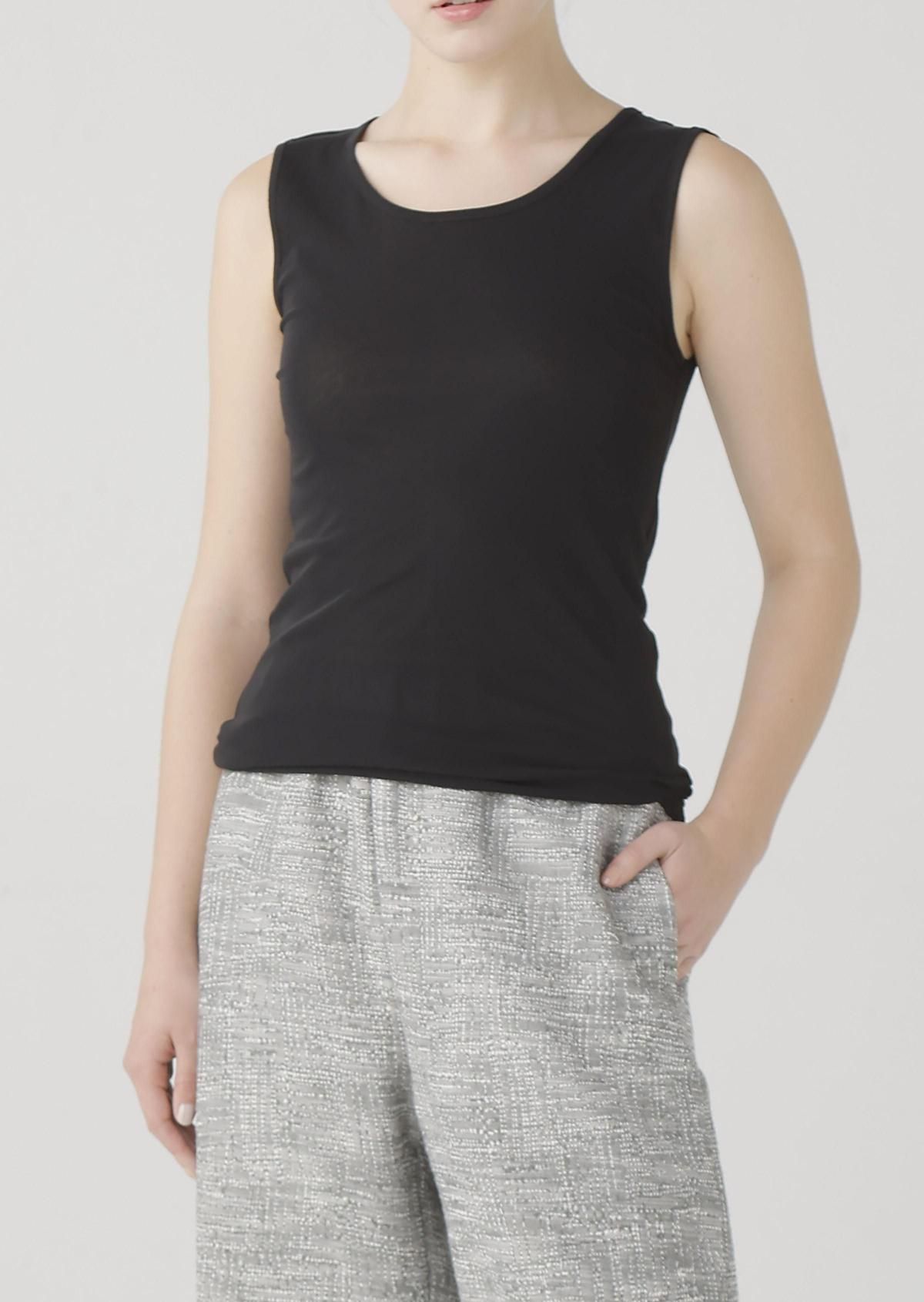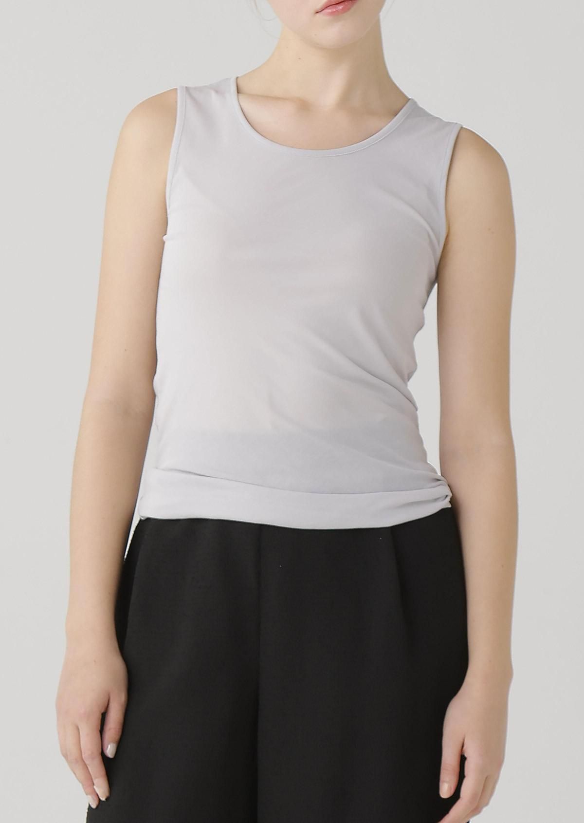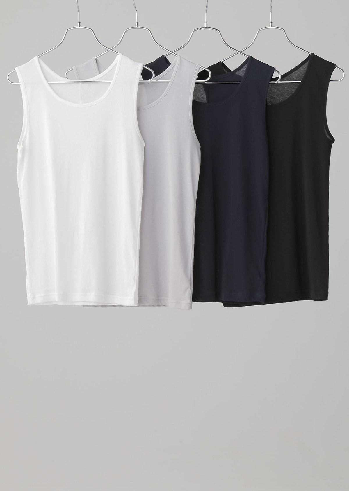 さらりとした生地感のタンクトップは、春夏のインナーとして重宝します。