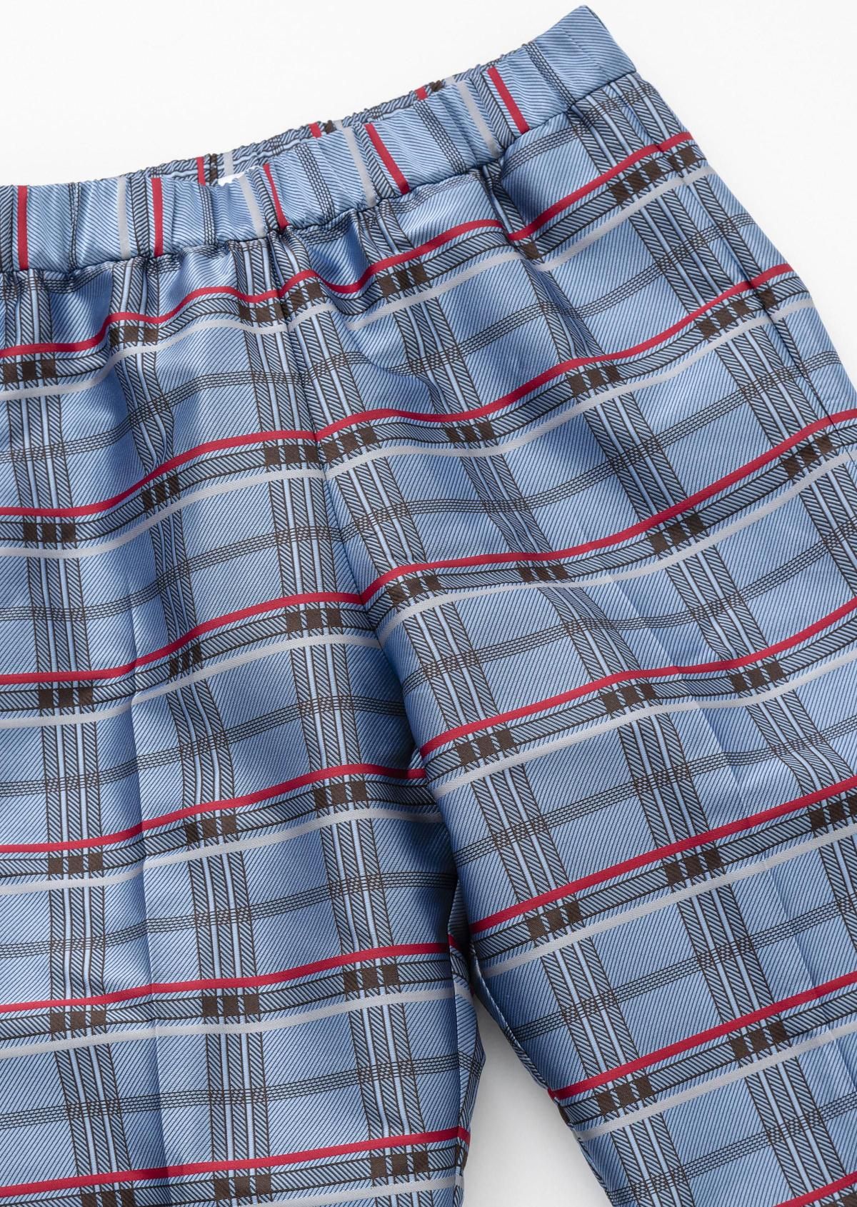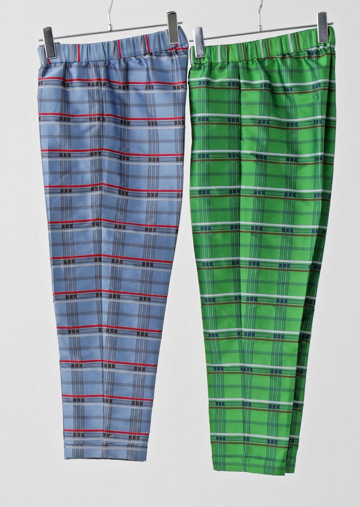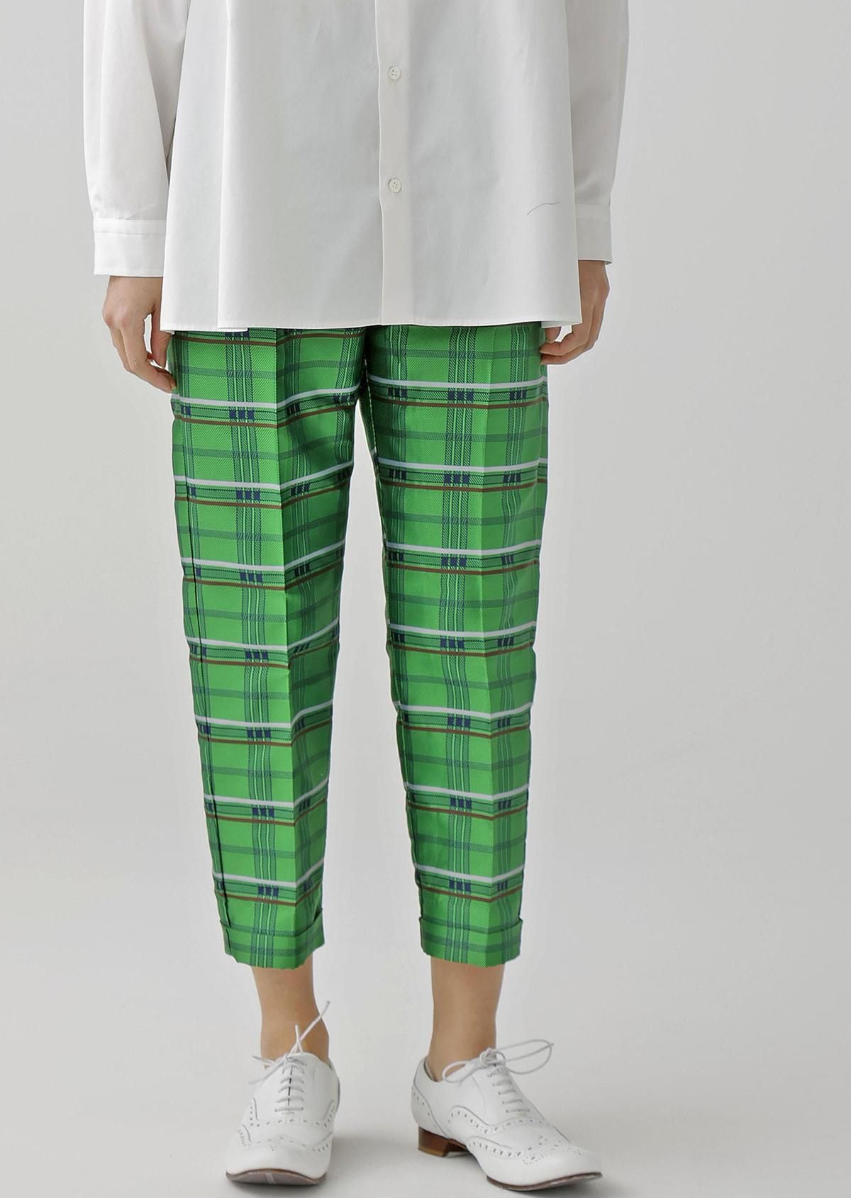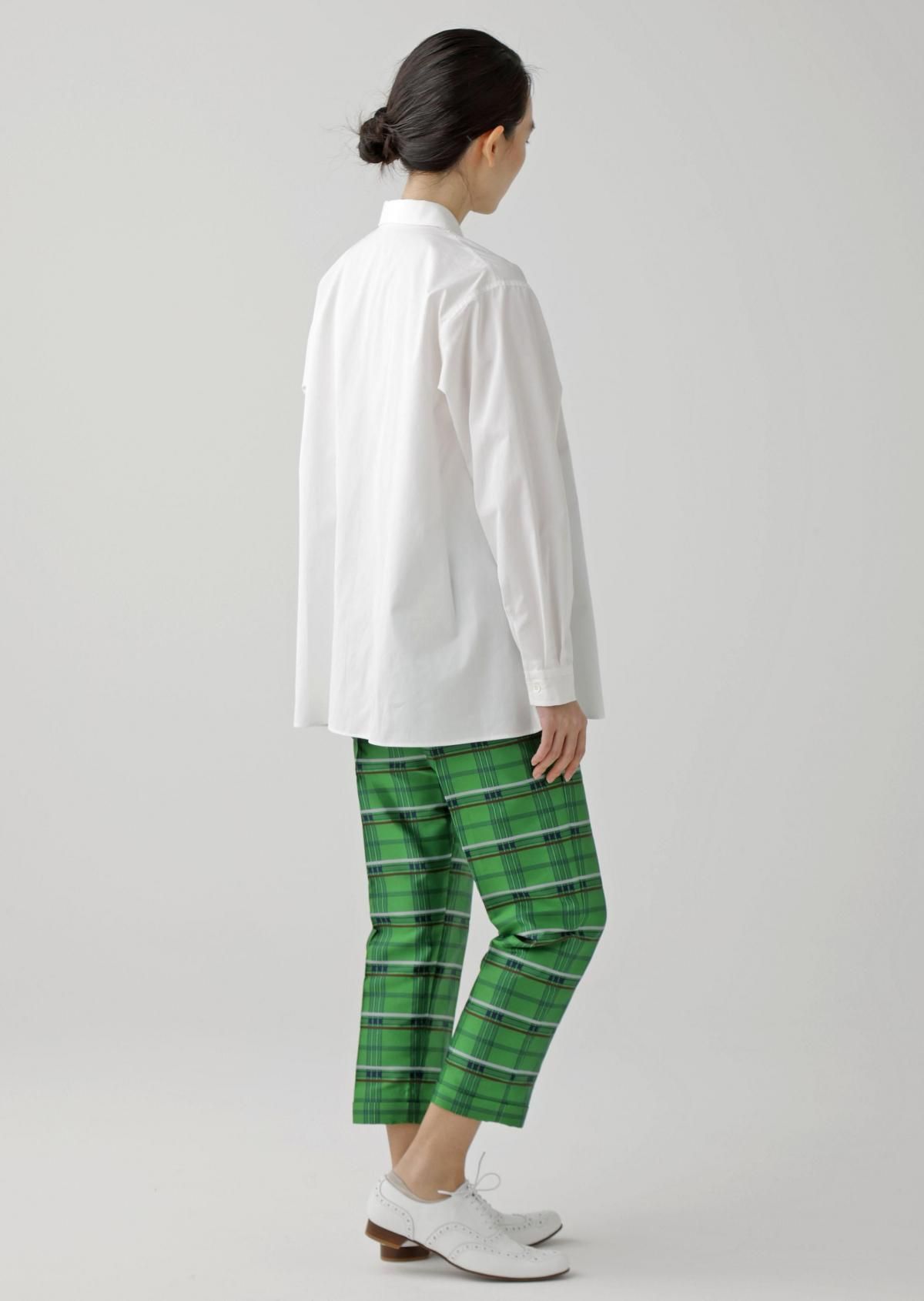 繊細な線を重ねたジャガード織りで表現したオリジナルのチェック生地を使用。