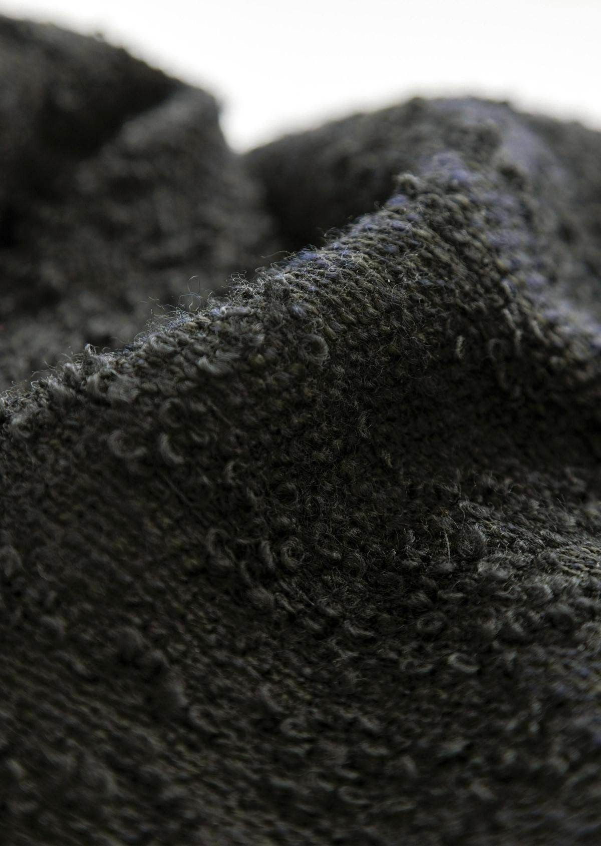 上身頃はsuper120'sのなめらかなウール生地、ボトムにはウール混のループヤーンで織り上げた膨らみのあるジャガード織り生地を使用。