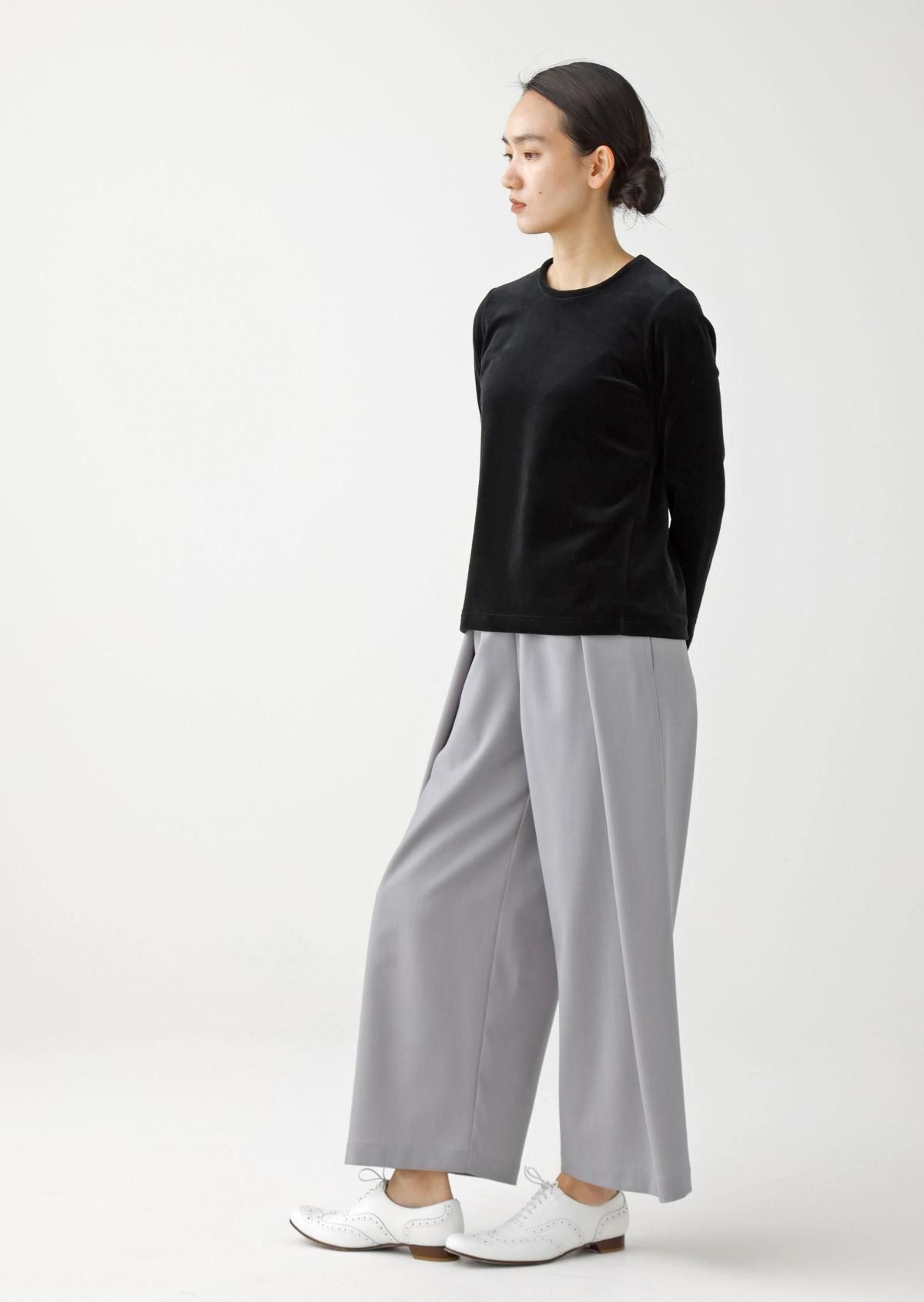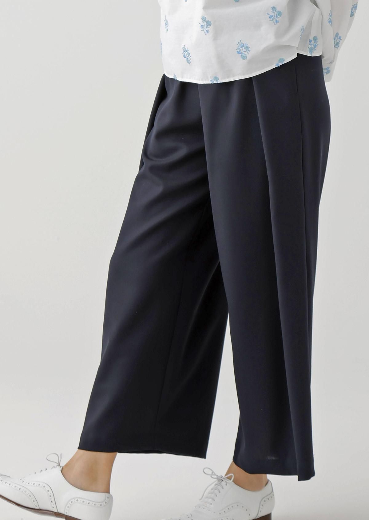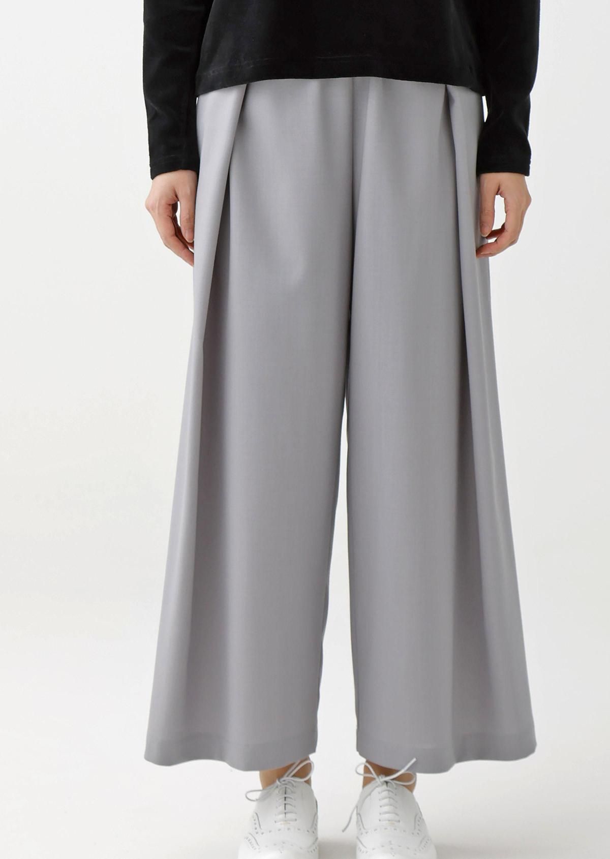 ギャザーとタックの陰影が綺麗なワイドパンツ。