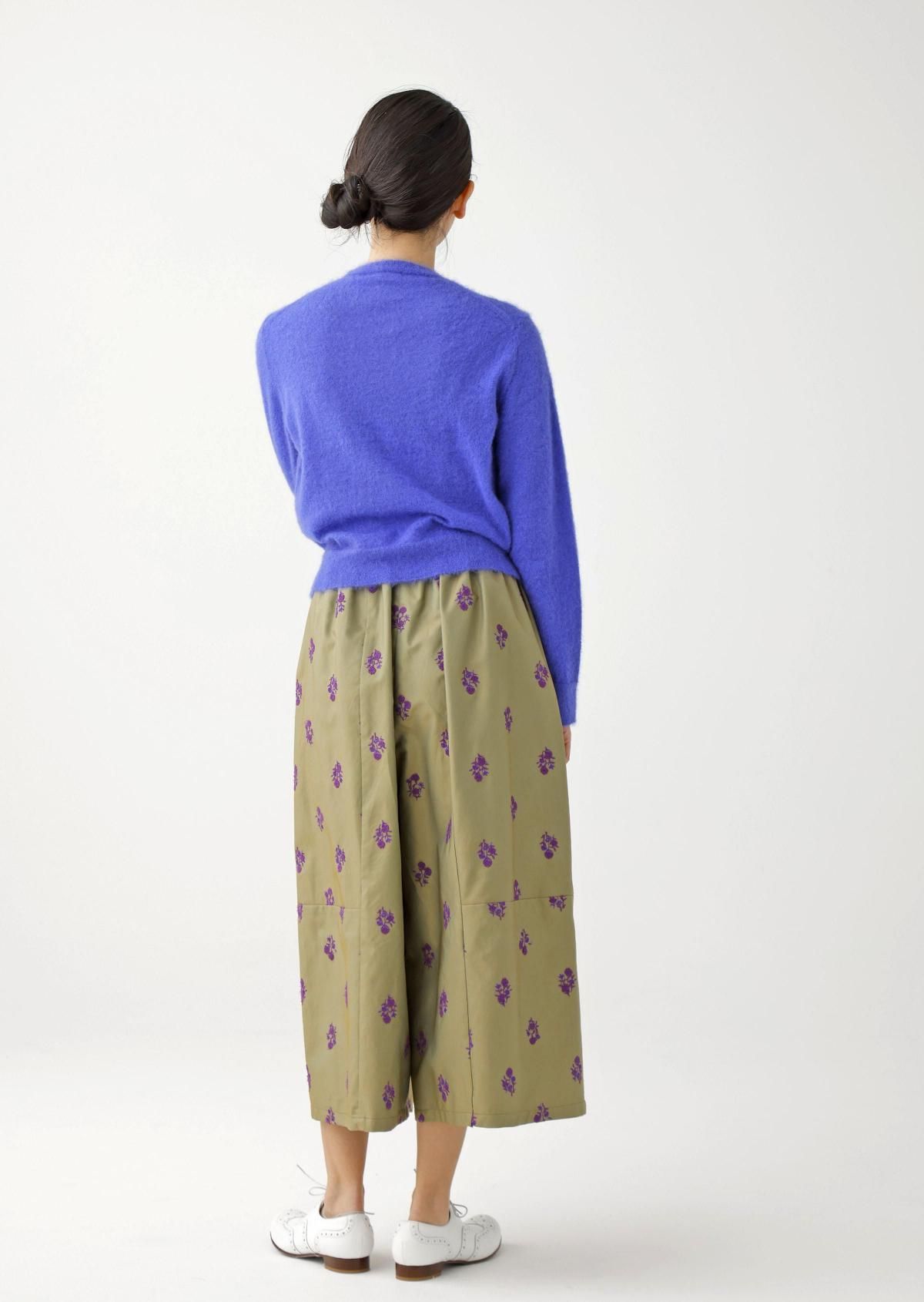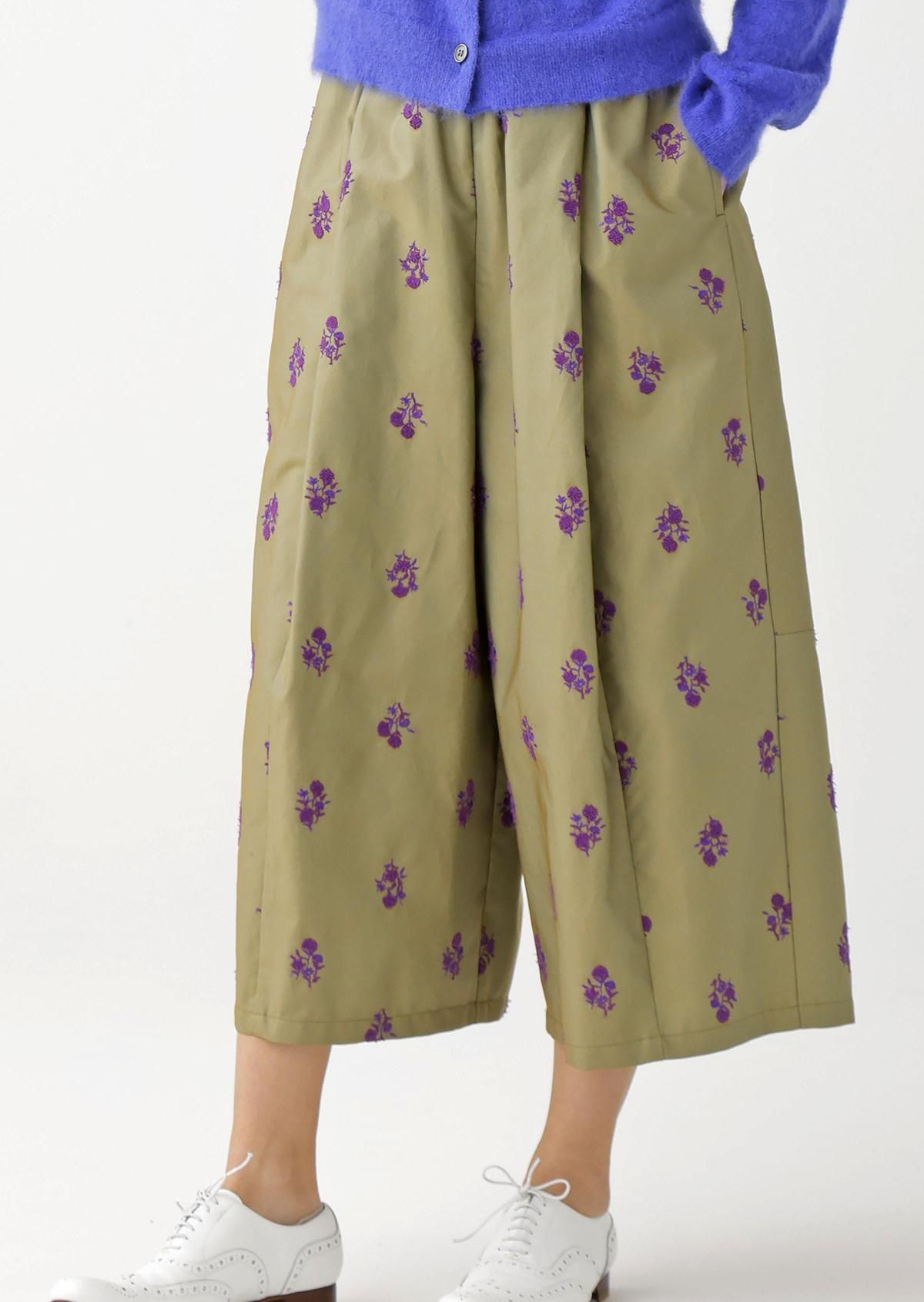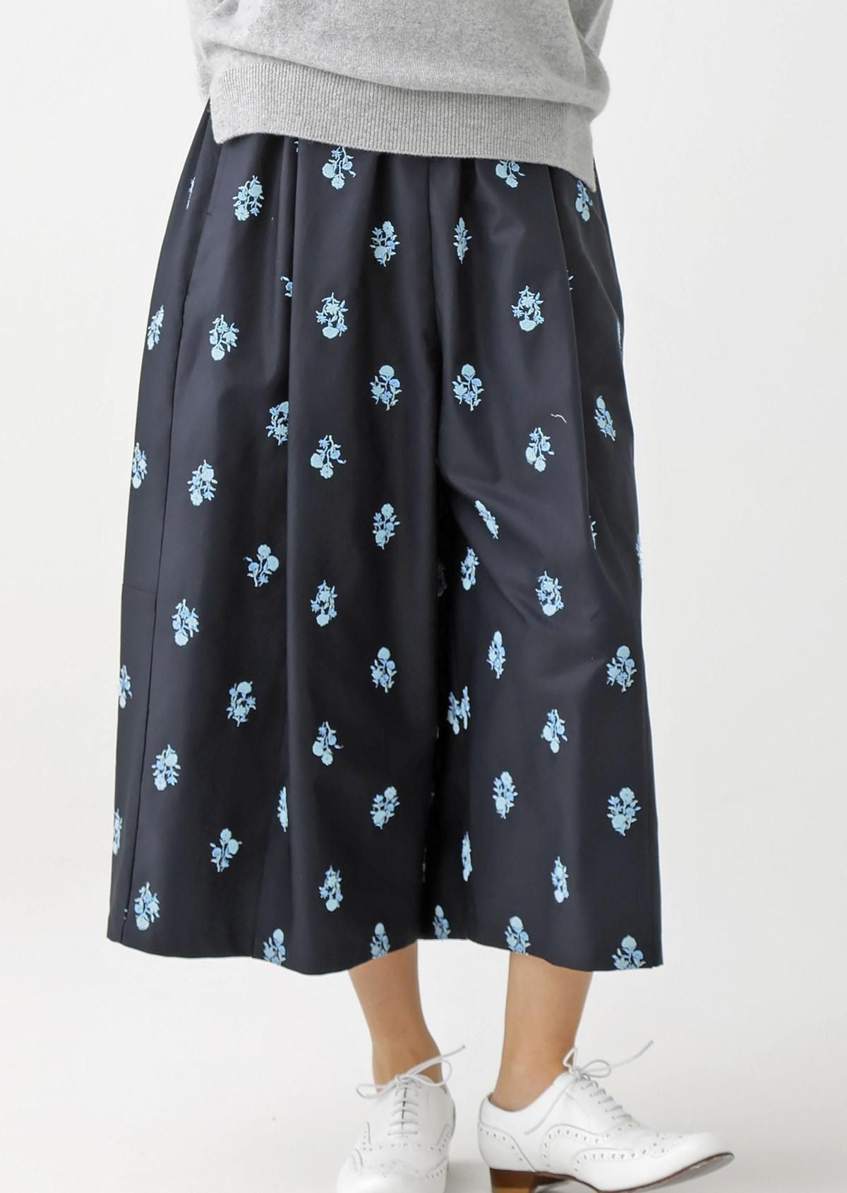 角度によってはスカートのような表情もある、程よいボリュームのキュロットパンツ。