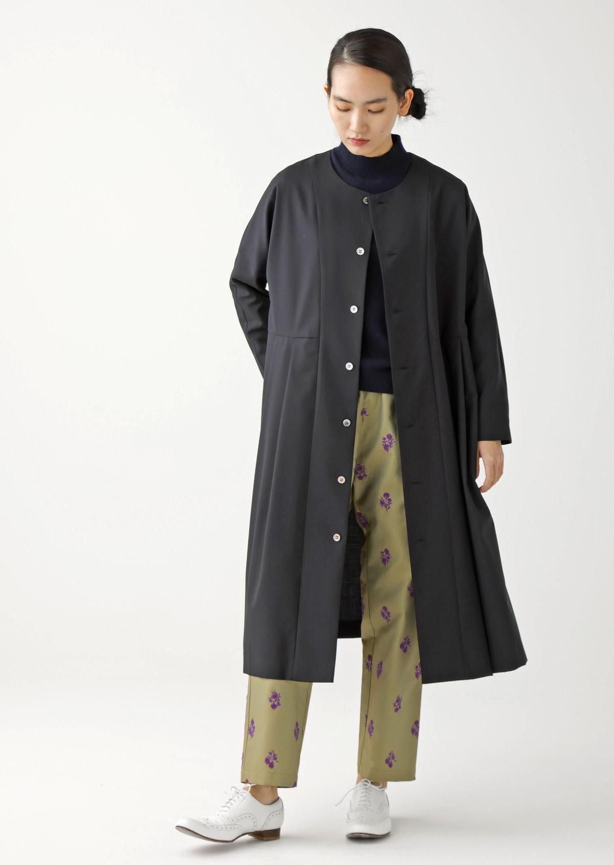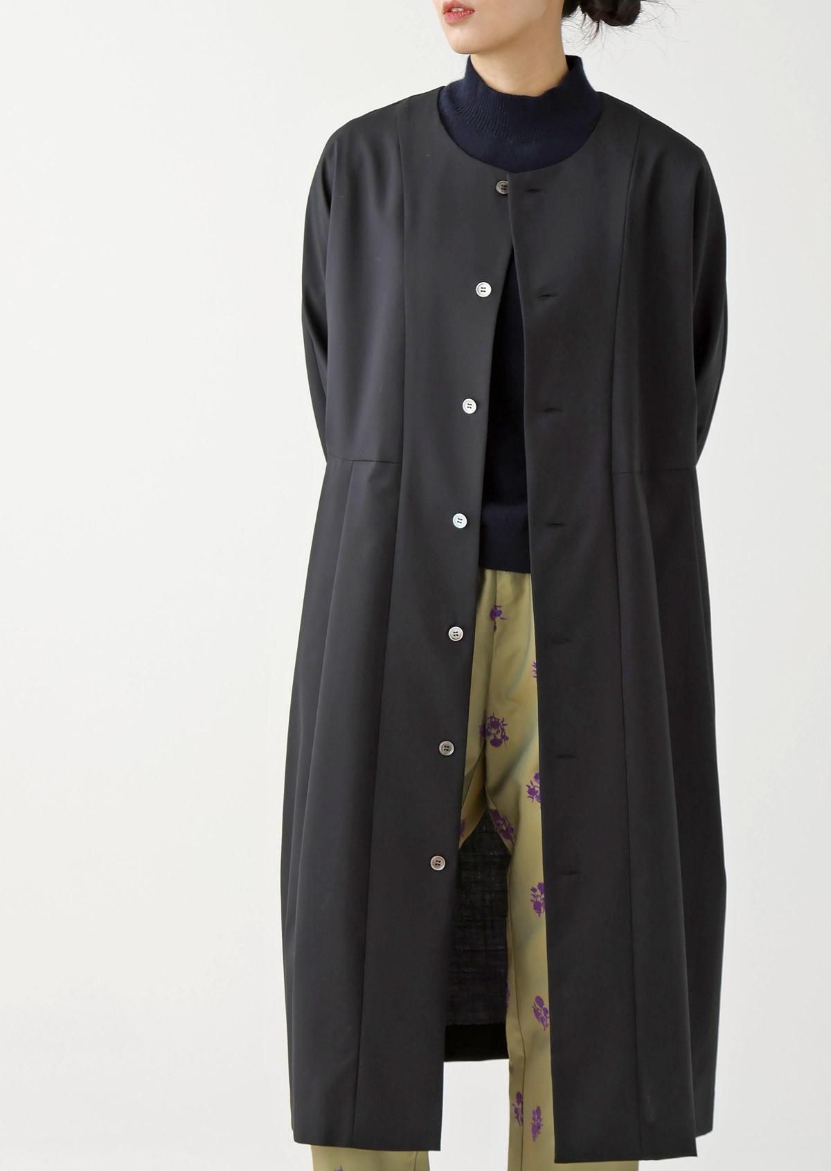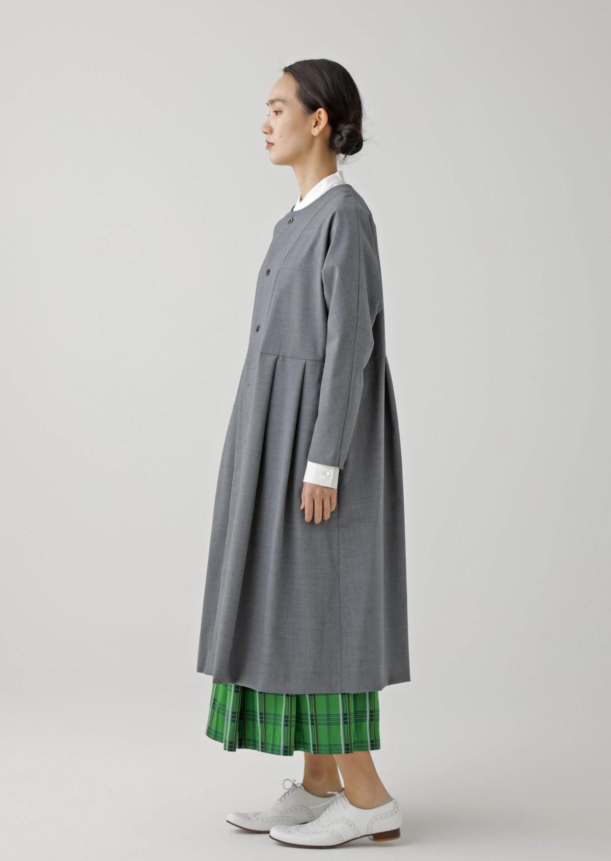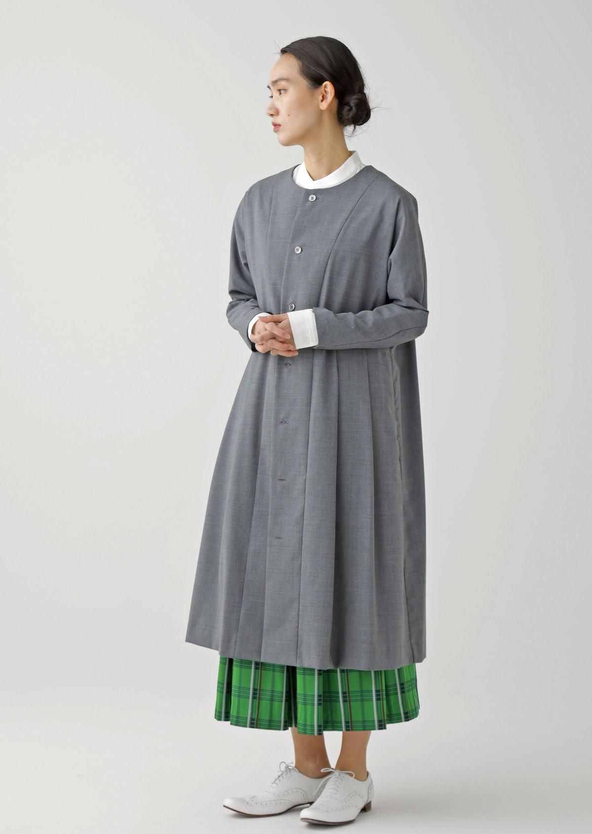 裏なしの軽い仕立てなので、季節の変わり目に薄手のコートとして、フロントボタンを閉じてワンピースとして2wayの着こなしが楽しめます。