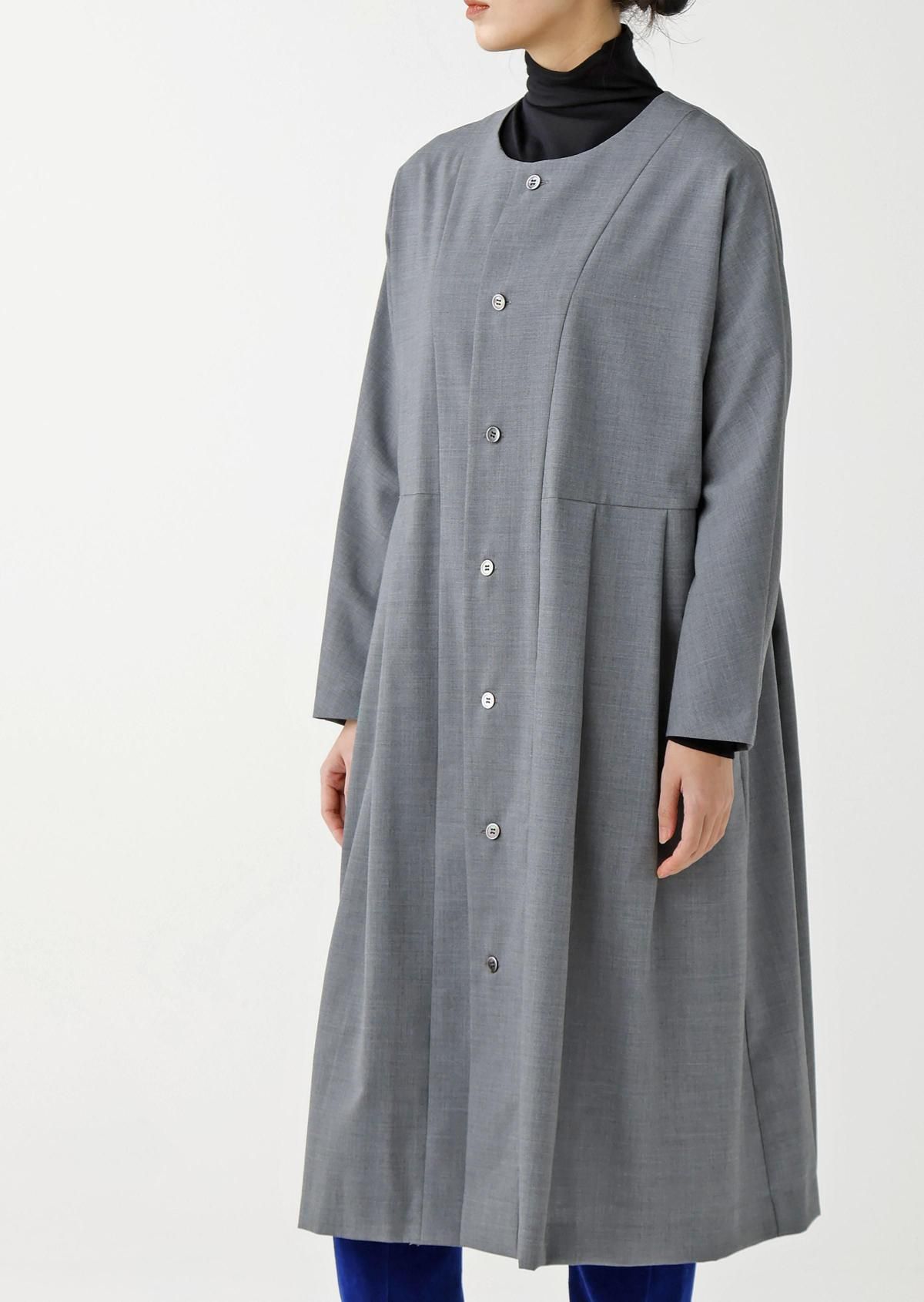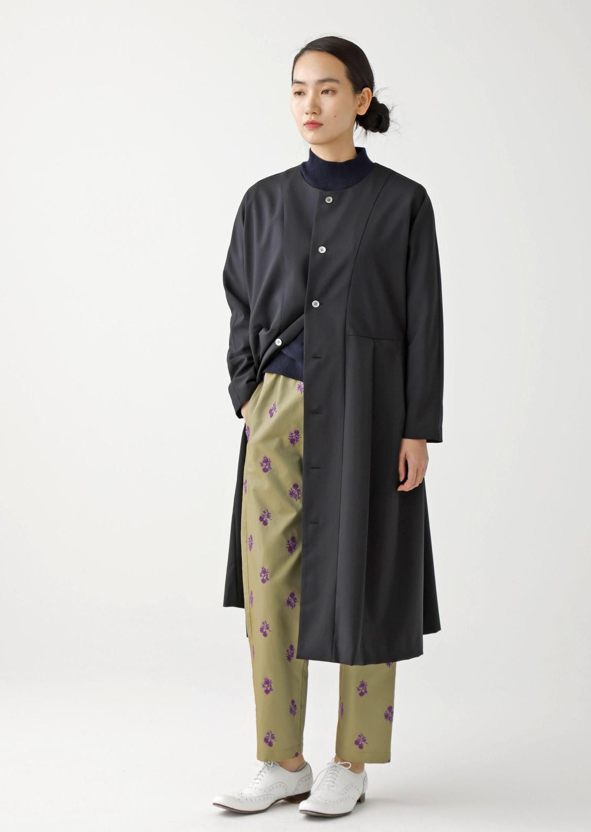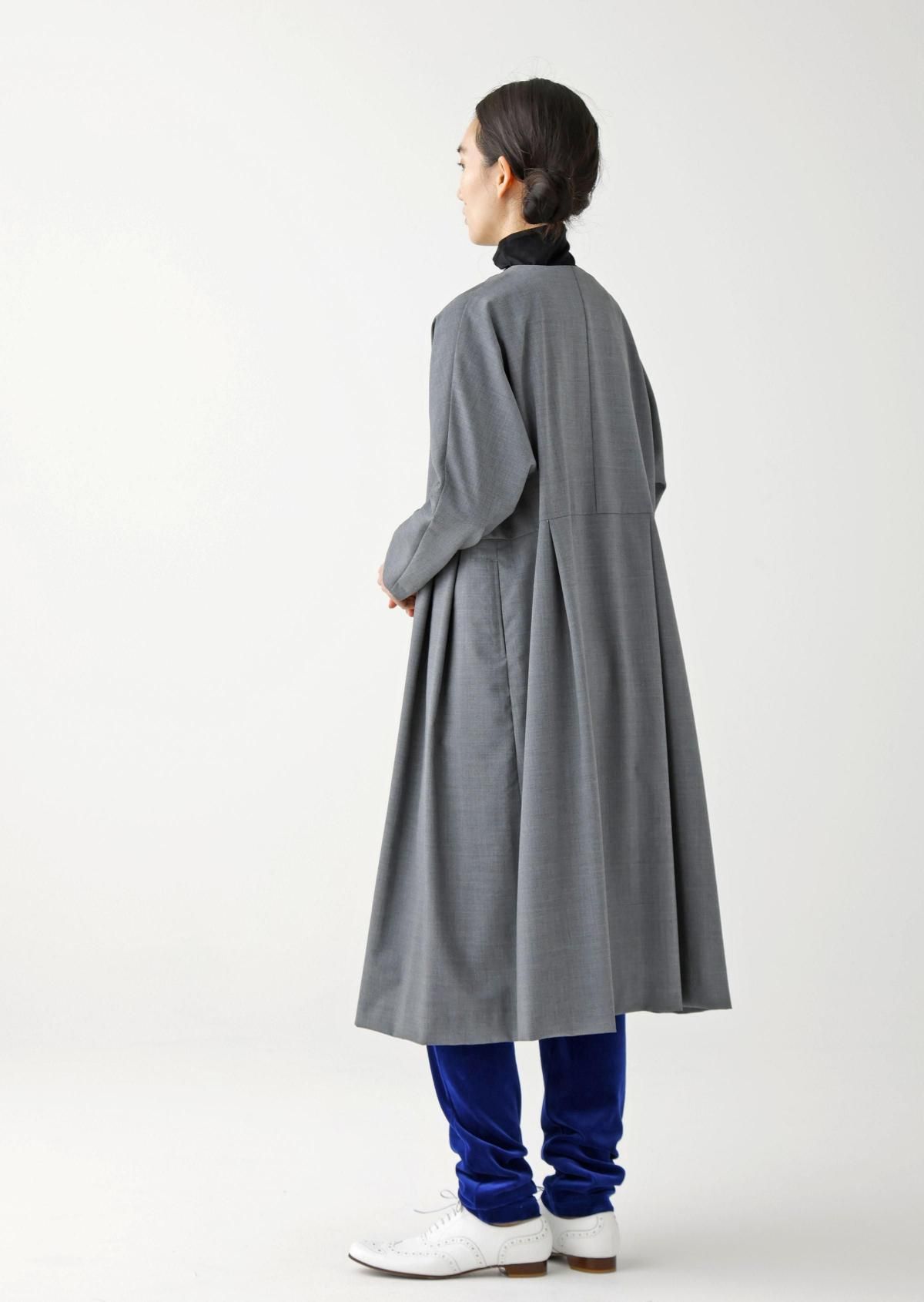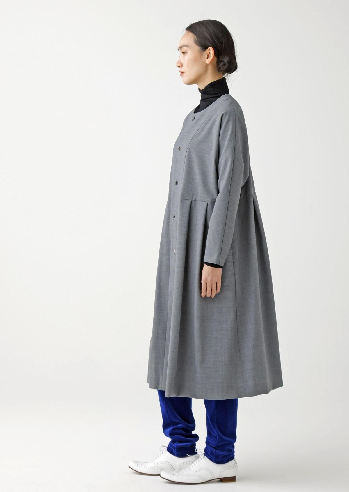 裏なしの軽い仕立てなので、季節の変わり目に薄手のコートとして、フロントボタンを閉じてワンピースとして2wayの着こなしが楽しめます。