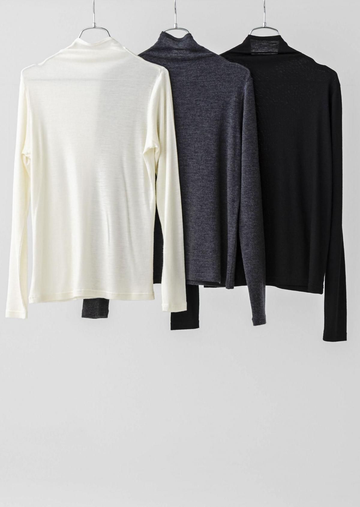 薄手ですが暖かく、一枚での着用はもちろん、かさばらないのでお持ちのセーターやカーディガンのインナーとしてもおすすめです。