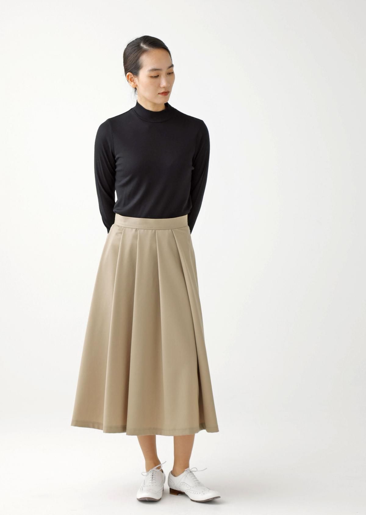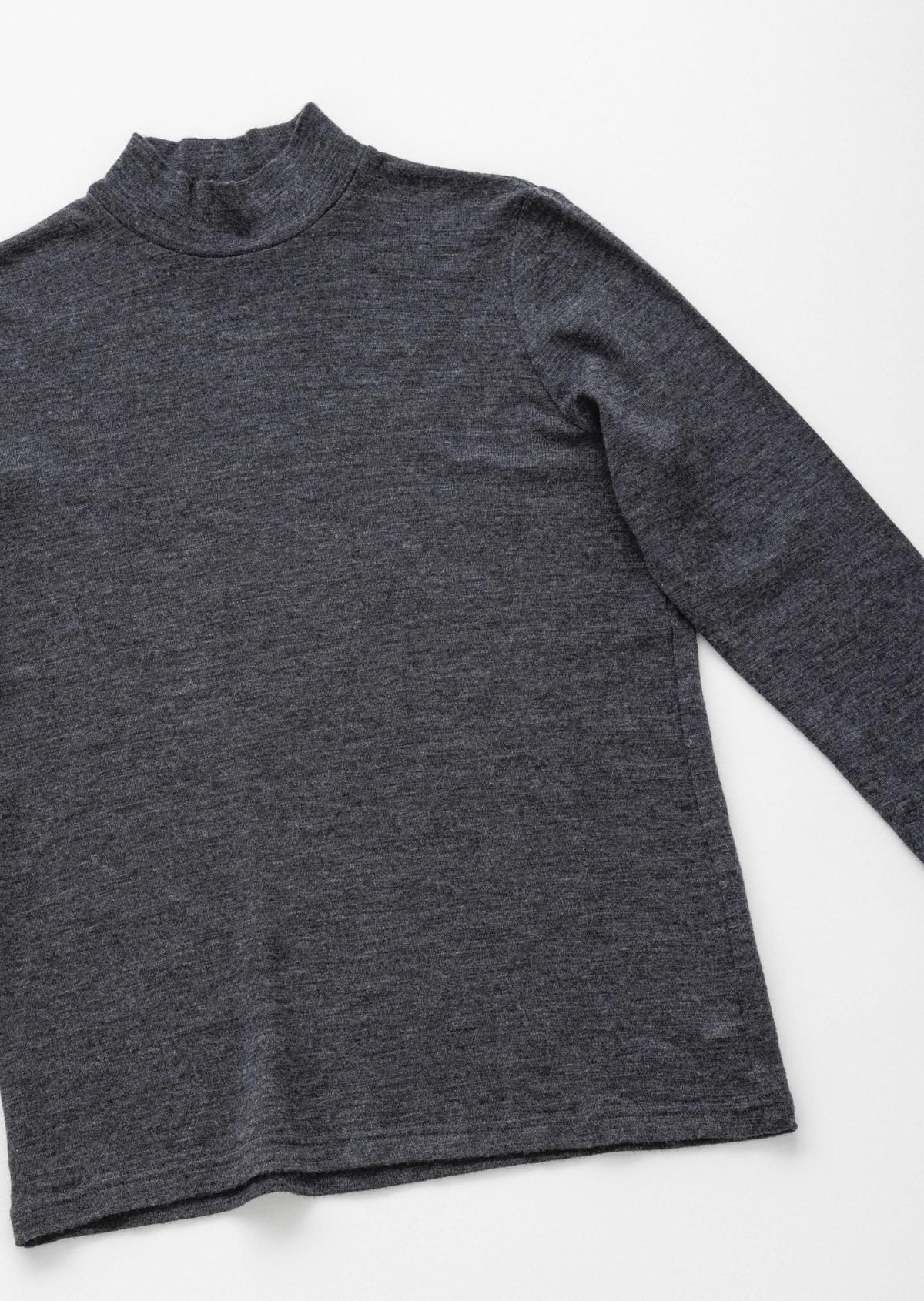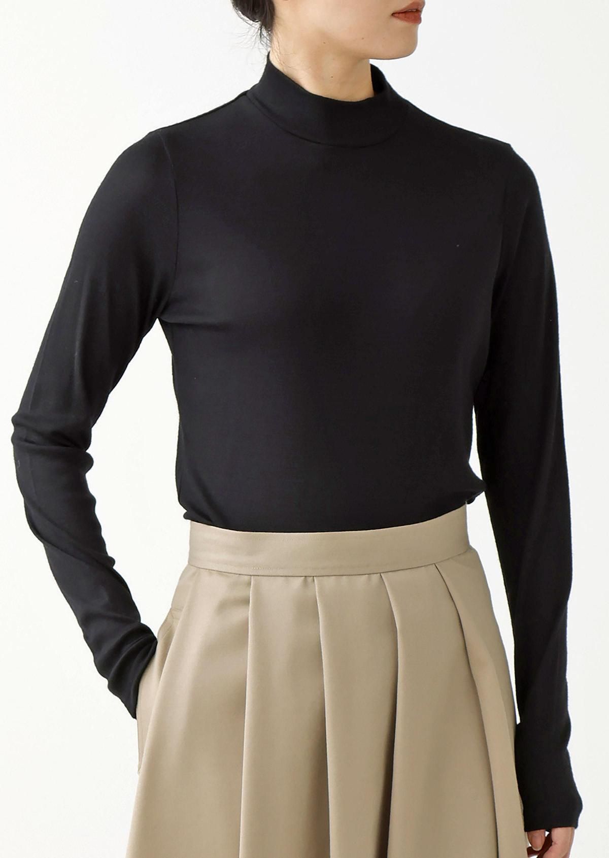 薄手ですが暖かく、一枚での着用はもちろん、お持ちのセーターやカーディガンのインナーとして覗かせると、ハイネックが品良くまとめてくれます。