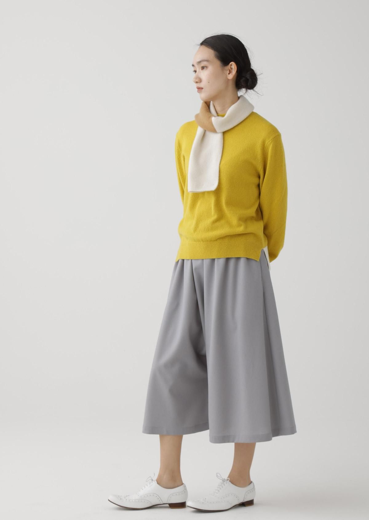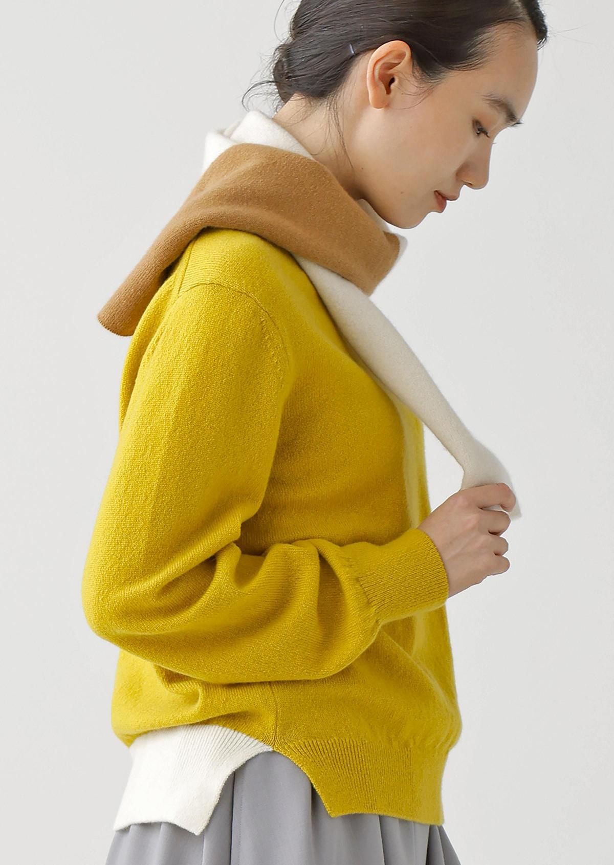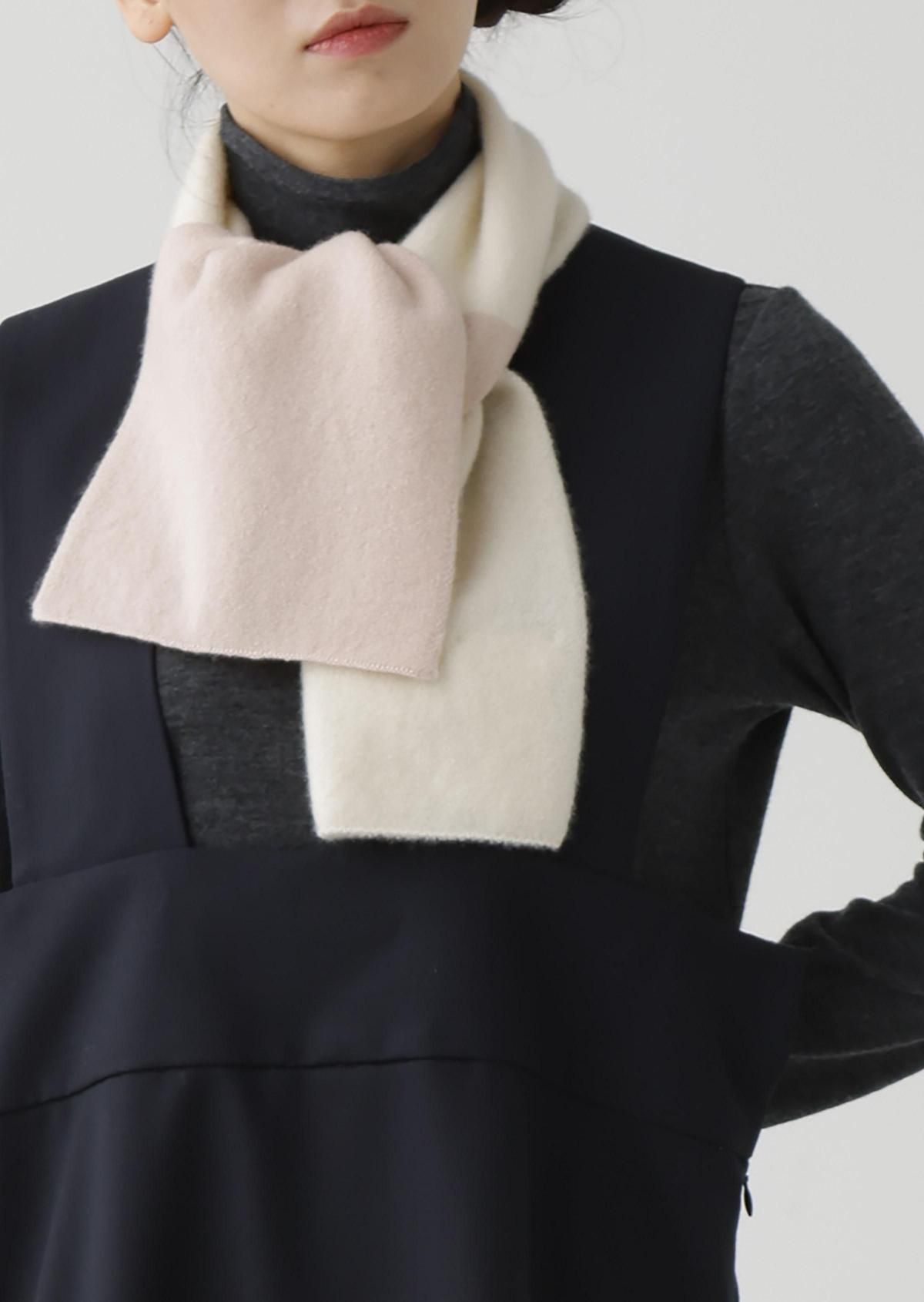 コンパクトなサイズに仕上げたストールは、ネックラインにくるりと巻くだけでとても暖かく、明るいアクセントカラーに。