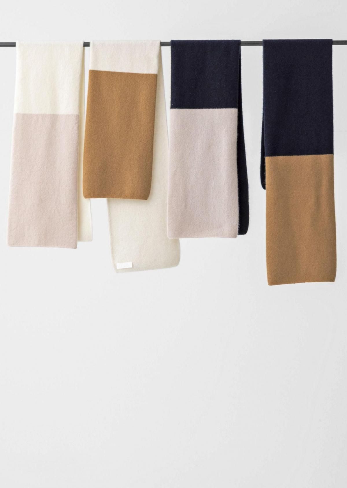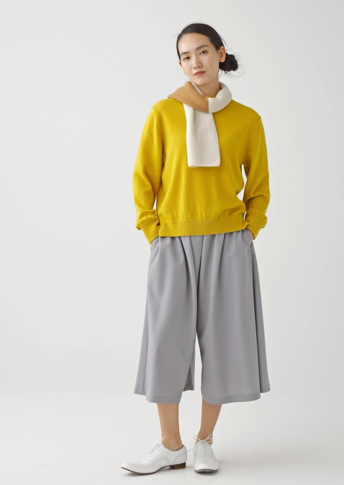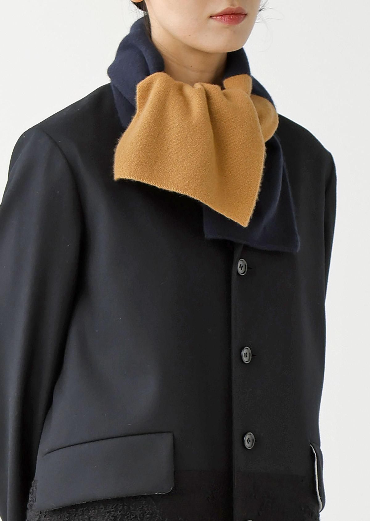 コンパクトなサイズに仕上げたストールは、ネックラインにくるりと巻くだけでとても暖かく、明るいアクセントカラーに。